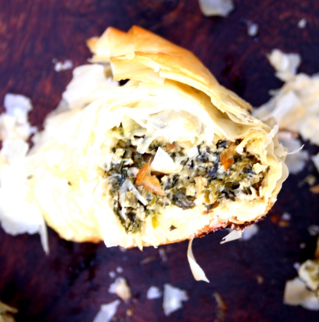 Voilà un feuilleté d’origine grec qui réjouit bien les papilles. J’aime beaucoup ce légume, et cette façon de l’accommoder me permet de varier de ma traditionnelle tarte aux blettes. Quelques feuilles de pâte filo, de la feta, un peu de coriandre … et nous voilà partis !!