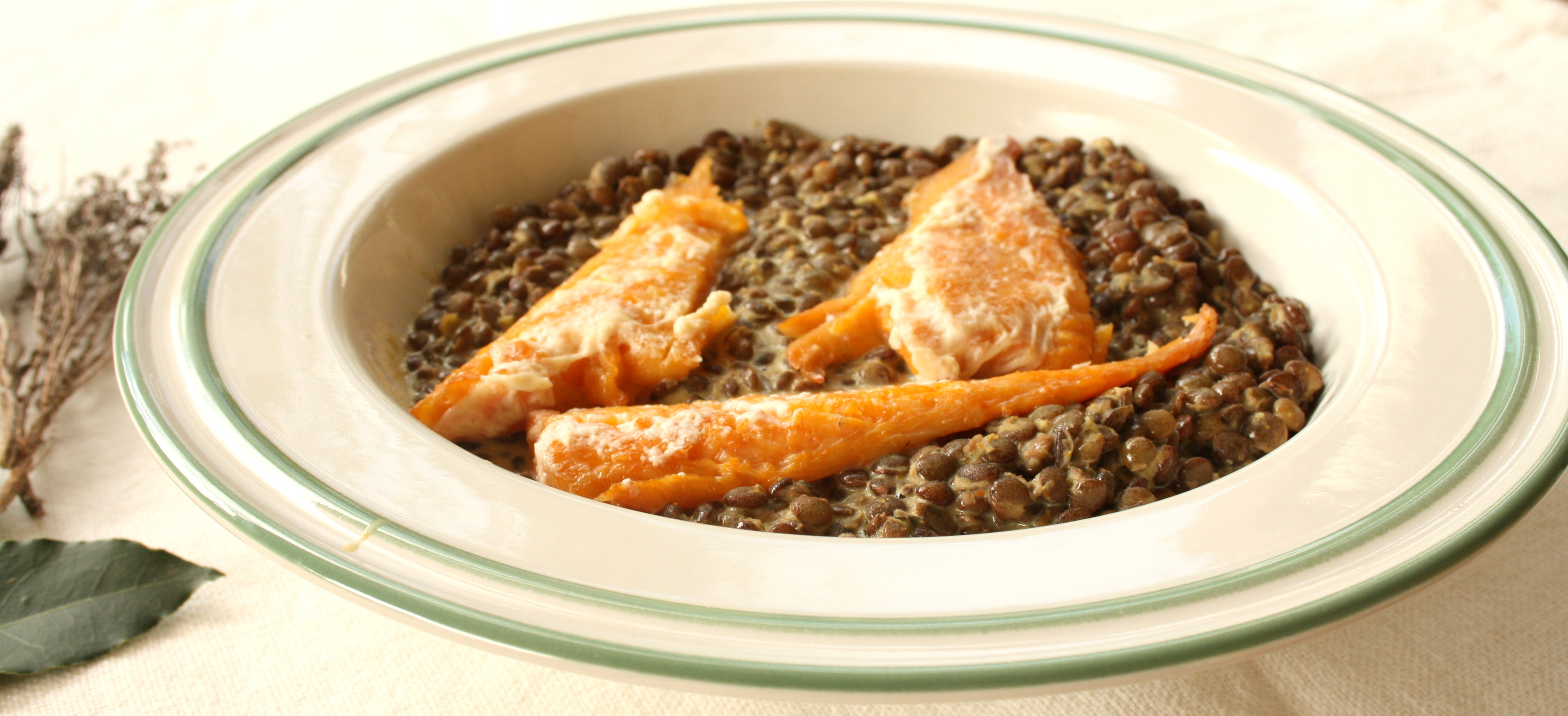 La lentille, c’est tout bon !! Gustativement parlant bien sûr mais c’est aussi un aliment qui fait du bien !! Il serait bon d’en manger au moins une fois par semaine, mais aussi trouver les façons de l’accommoder sans s’en lasser n’est-ce-pas …. Cette recette allie le petit goût fumé du haddock qui se marie fort bien avec les lentilles et une jolie sauce crémée au curry … Un bel accord qui réveille nos papilles !! Et si vous avez envie de varier les recettes, n’hésitez pas à aller sur le site de Régal, un dossier entier lui est consacrée, soupes, salades, dahls, avec du poisson, avec de la viande, bref tout plein de bonnes recettes, toutes plus gourmandes les unes que les autres !