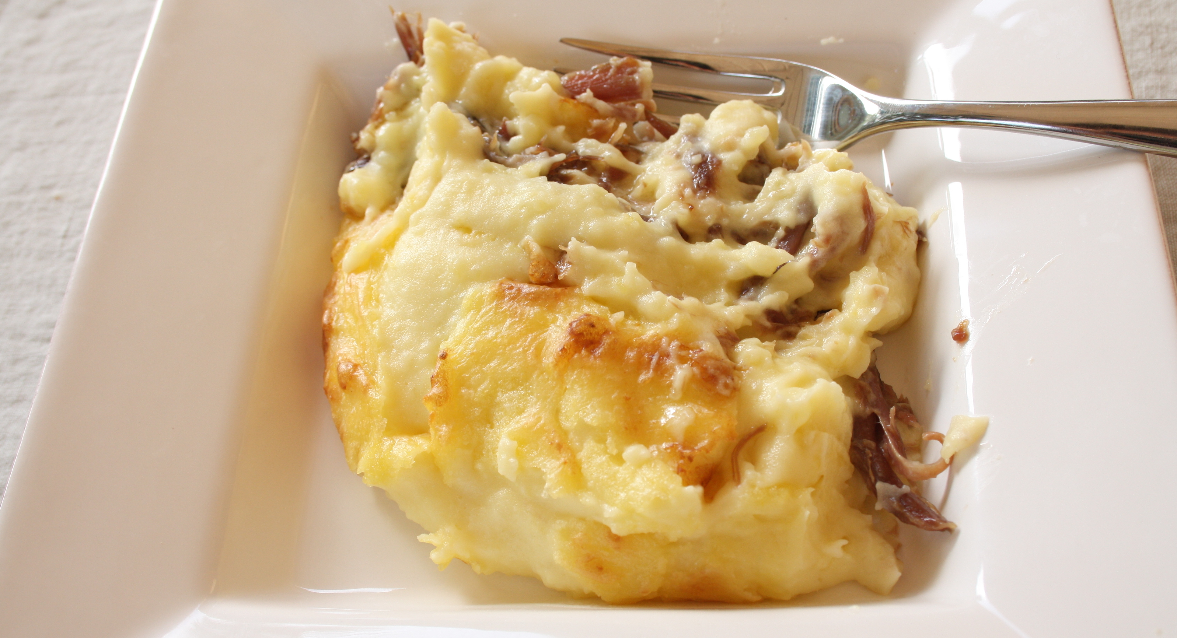 Et voilà, la pluie est de retour, le froid, on a envie de bons petits plats qui nous réchauffent… Pourquoi pas un hachis parmentier, mais de canard, sud-ouest oblige !! Non seulement c’est bon, mais c’est aussi facile à faire. Une bonne purée maison, deux à trois cuisses de canard, et le tour est joué !!