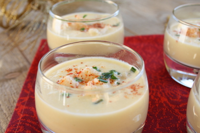 Après une semaine de vacances romaines fort sympathiques, me revoilà avec ce petit velouté d’asperges que j’avais concocté avant mon départ. L’avantage est que l’on peut le présenter soit en verrines apéritives tièdes ou froides, soit en entrée chaude. D’une façon ou d’une autre, l’association asperges veloutées et crabe est superbe !!