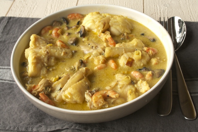 Une envie de blanquette réconfortante, mais aussi une envie de poisson, et le résultat, une blanquette de lotte super goûteuse. Ajoutez-y quelques champignons, quelques belles crevettes, une bonne pincée de safran, et c’est le bonheur !! Culinaire évidemment …