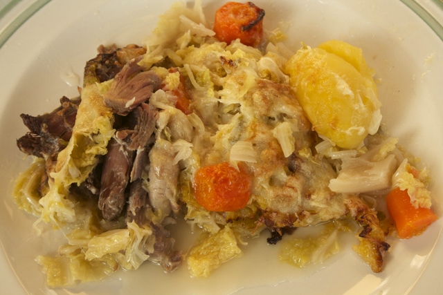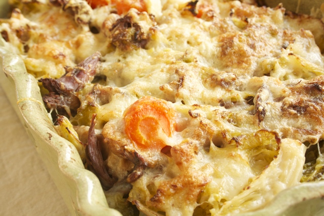 Gratin de chou vert au confit de canard