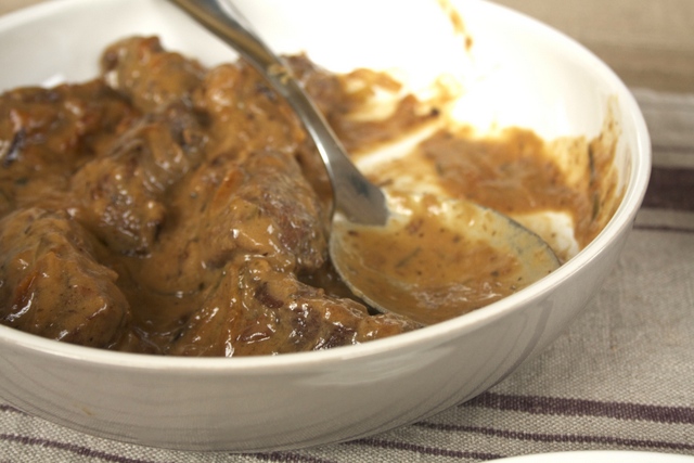 Servir bien chaud avec une purée, des pâtes ….