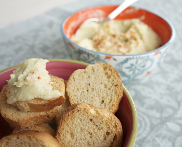 Pour accompagner mes tartelettes oignons chèvre lors de mon dernier apéro, j’avais envie de proposer une crème de légumes, et surtout une grande envie d’artichauts !! J’en ai toujours, soit au congélateur, soit en bocal. Et bien sûr, j’en avais un (de bocal !) qui trainait dans mes placards. Une des premières recettes de ce blog était une tapenade artichauts/olives (ici) mais j’aime bien changer. Donc après une petite recherche sur internet, j’ai trouvé cette recette de caviar d’artichaut sur Marmiton, et elle m’a bien plu (j’ai simplement modifié certaines quantités). Le mélange artichauts parmesan est très agréable, les saveurs se mariant à merveille. Accompagné de petits croûtons, le top !!