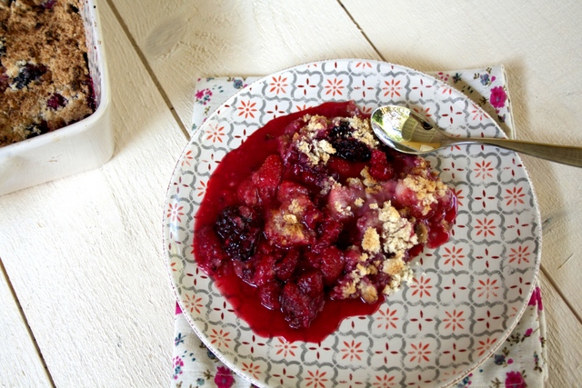 Crumble aux fruits rouges et beurre de coco
