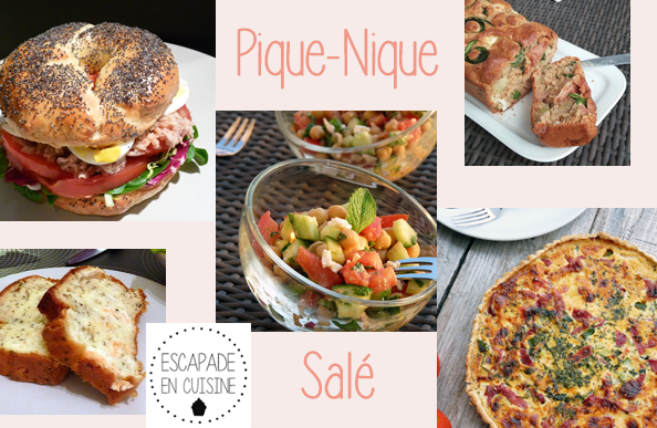 On est le 30 juin, il fait chaud, et le temps des pique-niques est arrivé, pour le plus grand plaisir de tous. C’est justement le thème de juin d‘escapade en cuisine, le pique-nique salé. Ce mois-ci, le tirage au sort m’a envoyée piocher une recette sur le très joli blog de Nathalie du blog de c’est Nathalie qui cuisine, et c’est Gabie du blog Q-e-zine qui est venue chez moi. J’ai choisi de faire une tarte, le choix était vaste, et j’ai trouvé cette très jolie et très appétissante tarte aux aubergines et au chèvre. J’aime bien les tartes en pique-nique, on coupe, on emballe les parts, et le tour est joué !! Je n’ai rien changé à la recette, j’ai juste ajouté du thym dans la pâte et sur l’appareil avant la cuisson. On s’est tous régalé !!