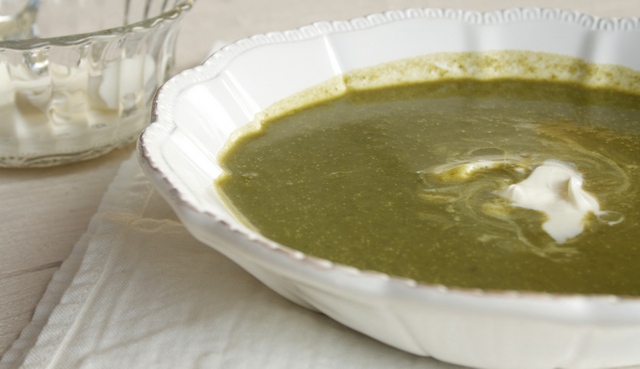 Au moment du service, ajouter une cuillerée à soupe de crème épaisse dans chaque assiette.