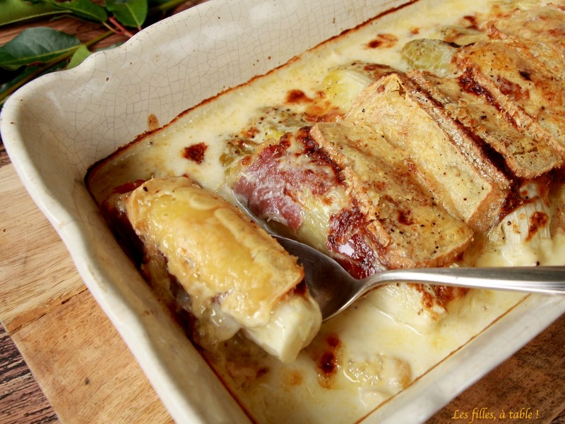 pas fan des endives cuites mais le reste , j’adore alors je tenterais bien une version aux poireaux!!!! bisous