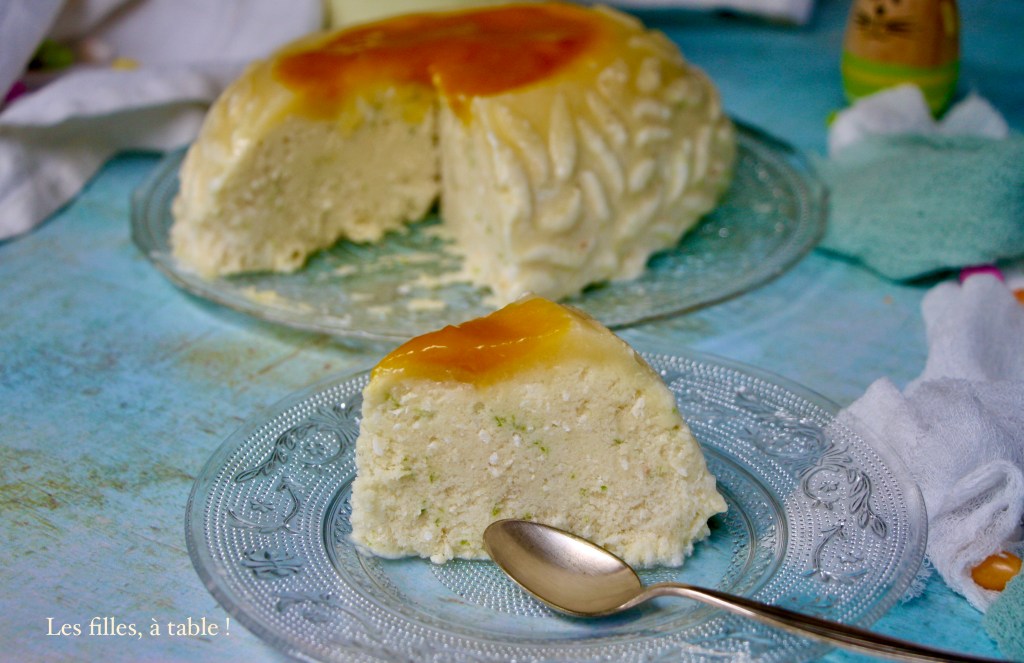 Pour vous proposer ce petit dessert très frais, j’ai ressorti mon moule oeuf de Pâques de chez Demarle, il est très joli et fait son petit effet sur une table pascale ! Je vous avais partagé l’an dernier un cheesecake au chocolat blanc et coco dans ce même moule, tout aussi délicieux. Je l’avais associé à un coulis de mangue, tout comme ici, coco/mangue, ça marche toujours ! C’est un dessert que j’ai testé à Noël, je me suis dit qu’il avait toute sa place également à Pâques, il termine de façon bien légère un repas qui peut être copieux. On peut le préparer bien avant, on l’oublie au congélateur et on le sort au dernier moment. Pas de cuisson, vite fait, c’est parfait … Une petite précision avant de passer à la recette, il convient d’acheter du lait de coco en conserve et non en brique, cela permet de récupérer la noix de coco solidifiée pour la monter ensuite en chantilly.