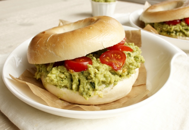 Envie de fraîcheur, je ne sais pas, mais j’avais ces deux beaux avocats bien mûrs qui paressaient dans mon bac à légumes, et surtout qui ne pouvaient plus attendre. J’avais également quelques bagels dans mon congélateur, ainsi qu’un beau filet de poulet. C’est en feuilletant le petit livre « bagels » de Marc Grossman que l’idée m’est venue. Et d’adapter aussitôt avec ce que j’avais sous la main. Et bien voilà le résultat, pas mal du tout, mais je pense tout de même qu’une prochaine fois, j’utiliserai de belles tranches de pain de campagne à la place des bagels afin de mieux apprécier le mélange avocats poulet.