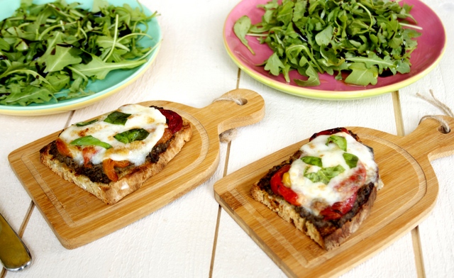 Voilà une petite recette que je fais depuis pas mal d’années dès que les beaux jours reviennent. J’ai mangé ces tartines pour la première fois dans un petit resto de bord de mer à Bandol dans le Var lorsque nous habitions la région. J’avais trouvé que le mélange de saveurs était superbe, et je me suis empressée d’en refaire à la maison. C’est une recette évidemment toute simple, mais avec une bonne petite salade de roquette assaisonnée d’une bonne huile d’olive et de vinaigre balsamique, c’est tout le sud que l’on déguste !!
