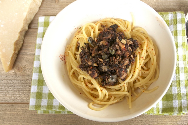 Et si on se préparait une bonne assiette de pâtes pour démarrer la semaine !! J’ai juste la recette qu’il faut … Lorsque je suis pressée, un peu à court d’idées, elle me dépanne toujours bien, sans compter que c’est super bon !! Je la tiens d’un petit livre des soeurs Scotto qui est paru il y a quelques années déjà « Gourmande et pressée ». Le titre veut tout dire !! C’est une cuisine très méditerranéenne, où les épices ont la part belle. Et puis le thon, la tapenade … un avant-goût des belles et longues journées à venir.